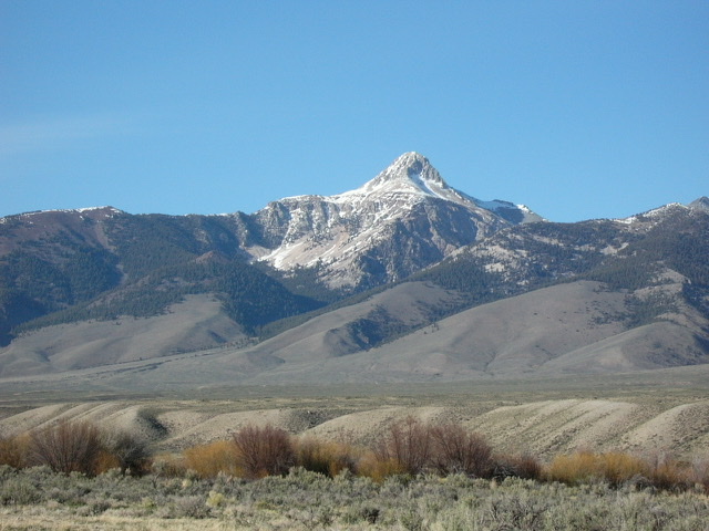 Sixty-five miles south of Salmon, the highway crosses Gilmore Summit and then begins a long, sweeping decent toward the Snake River Plain. The land is open, treeless terrain with huge alluvial fans pouring down from the mouths of dark, tree-filled canyons crowned by windswept summits. Suddenly, I spotted a stunning, Liberty Bell-shaped mountain. It towers over its otherwise impressive neighbors. I stopped the car and pulled out the road map. There were only two peaks identified by name on the map: Bell Mountain and Diamond Peak. The northernmost of the two peaks is Bell Mountain. An appropriate name, I thought. This moment was when my infatuation with the mountain began. I knew I had to climb it.