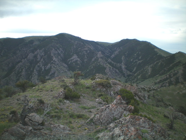 This gully includes some sections of Class 3 face rock to downclimb plus plenty of brush to tie up your legs and mountain mahogany to make your life even more miserable. In retrospect, I should have stayed on the ridge and descended southeast on the forested ridge from Point 7158 to reach the canyon more directly and easily. Once back down to the fork in the canyon, descend the center of the canyon via a cattle trail then a 2-track jeep road then a more established jeep road to return to the unsigned road junction at the mouth of the canyon and your parked vehicle.
