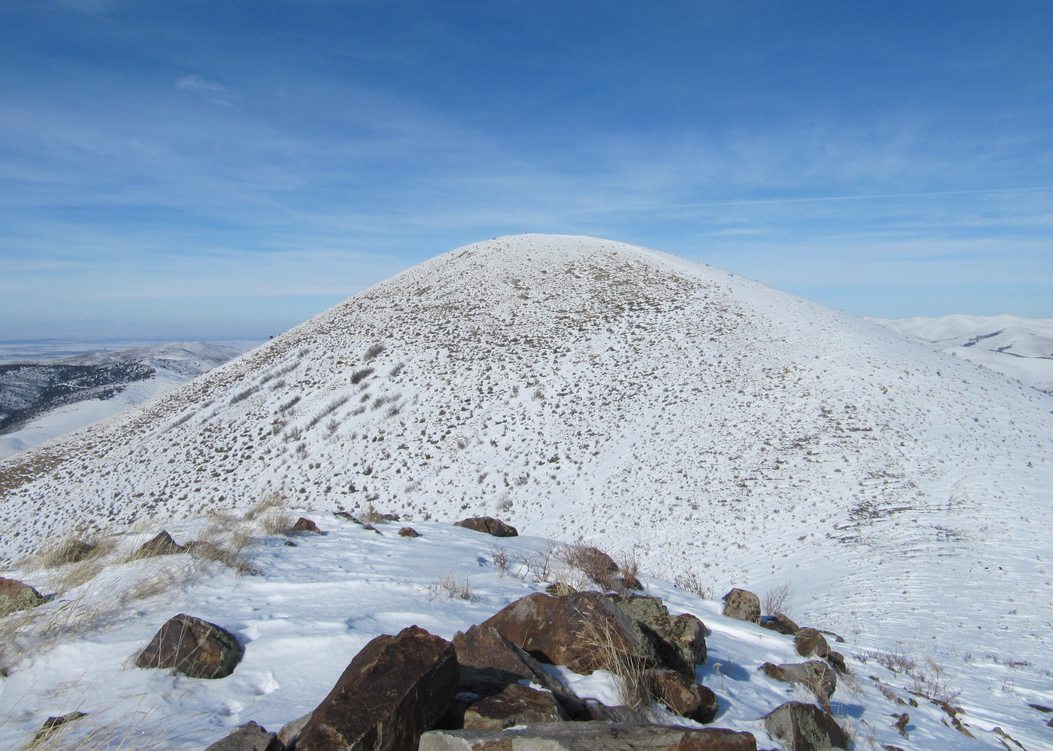 Retrace your steps back to the first scrub hump and then descend the steep scrub back down to Buckskin Road and your awaiting vehicle. Be sure to remain on BLM land on this final section of descent. Don’t wander off too far to the left/east or right/west. Many thanks to Dan Rainey of the Pocatello BLM office for providing me with excellent beta (and a Google Earth Map) to accomplish this climb while remaining entirely on BLM land.