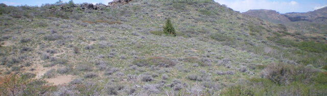 From the road junction, hike west up the 2-track road as it follows the left/south side of the fence row until it crosses to the right/north side of the fence and soon goes onto private property. Leave the road and continue to follow the left/south side of the fence row on an old, overgrown cattle trail. The fence heads west then bends right/northwest for a short section. It then bends right/north and heads up to cross the southeast ridge. Leave the fence row here and scramble northwest then west to the summit. You must endure three false, rocky summits on your way to the true summit.