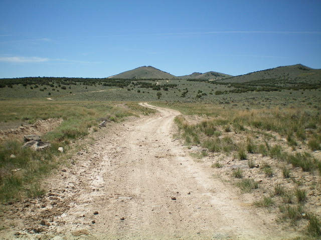 Cedar Butte is best accessed from Atomic City, ID. Atomic City is most easily reached on paved roads from the junction of US-20 and US-26 to the north. From that well-signed junction, drive south on US-26 for 6.7 miles to a [signed] right turn for Atomic City. Turn right and drive 1.3 miles on a paved road to reach Atomic City. The paved road ends at a junction with 2650W in bustling downtown Atomic City. Turn left/south onto 2650W and reset your odometer. Please note that 2650W should be labeled at “Taber Road” but is not.