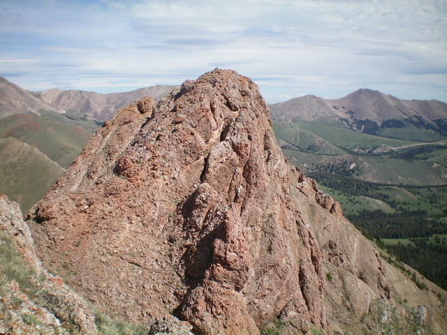 Cobble Mountain is a beautiful peak with three magnificent ridges on its south side: the southwest ridge, the south ridge, and the southeast ridge. The east face of the summit ridge is particularly rugged and exposed. The high point is about 0.3 miles south of the Continental Divide. This climb is part of a four-peak odyssey that includes Cobble Mountain (9,996 feet), Knob Mountain (9,762 feet), Red Conglomerate Peaks North (10,106 feet) and Red Conglomerate Peaks South (10,250 feet). USGS Edie Creek