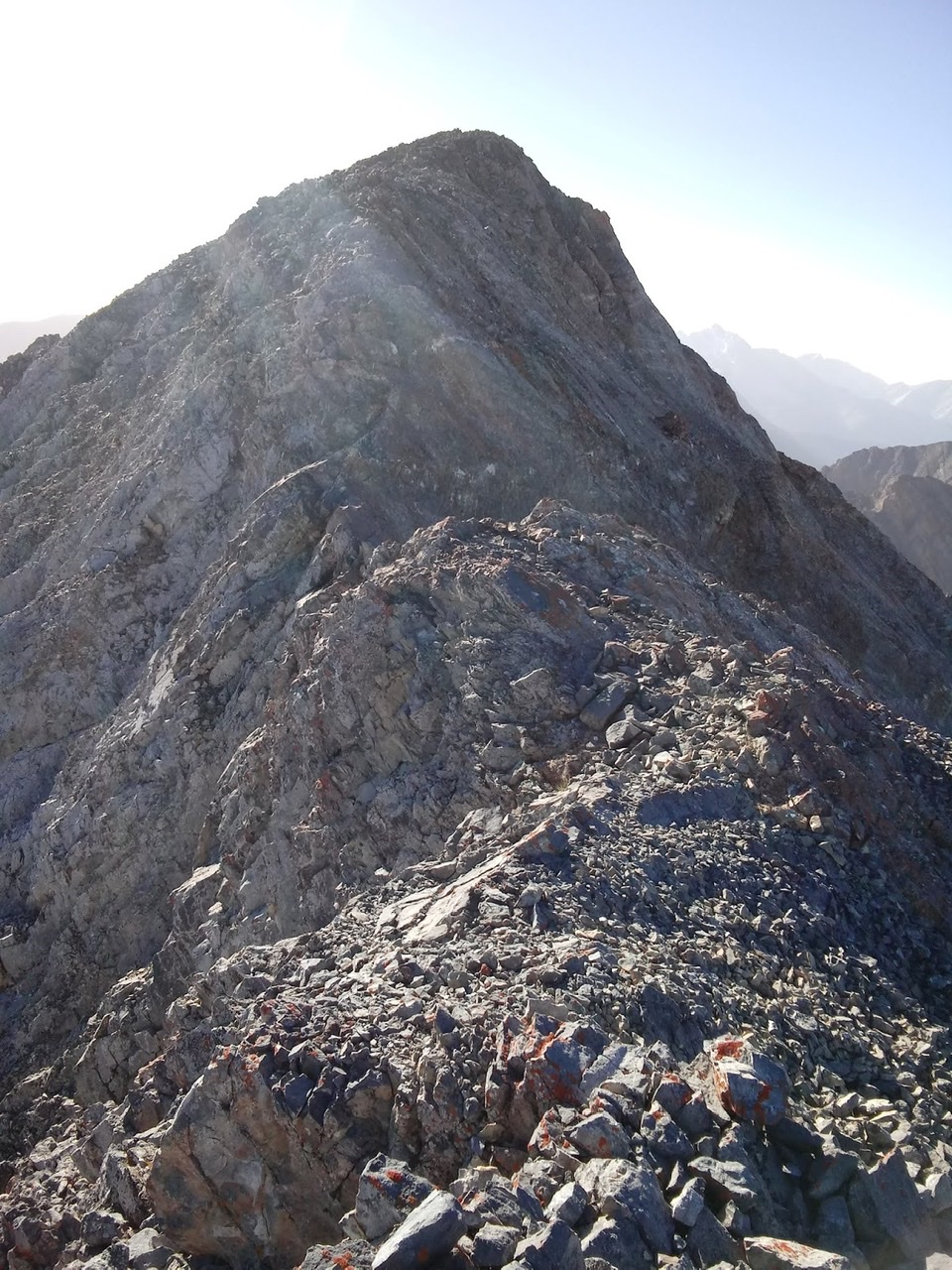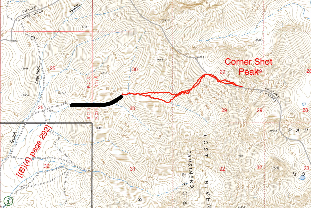 Climbing and access information for this peak is on Page 268 of the book. The book lists the elevation at 10,925 feet. Newer estimates put the elevation at 10,940 feet. I added Brett Sergenian’s photo of the upper route and his GPS track which starts from the Arentson Gulch and which shows the East Headwall Route set out in the book. Brett’s trip report is linked below. Updated November 2021