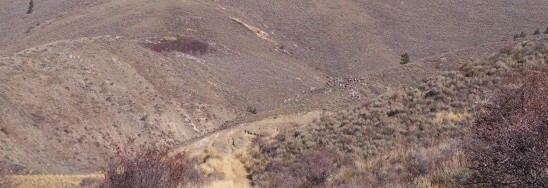 Enoch Peak (7,819 feet) is the high point of the Rasmussen Ridge. Knowing where to start is key. Any approach from likely-looking Enoch Valley Road is blocked by private land. Instead, come in from Upper Valley and drive NW up Rasmussen Valley Road. There is a nice staging area adjacent to the private mining haul road within sight of the Agrium mine facilities. Ride a two-track north for 2 miles on State land. Hike NE, crossing a restoration area of decommissioned strip mine. The chunks of black carboniferous rock fragments you see are part of the Permian Phosphoria Formation.