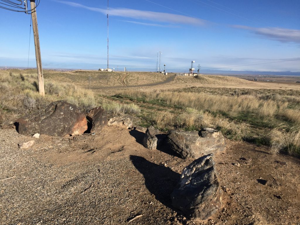 This Flat Top Butte is located in Jerome County northeast of the junction of US-93/ID-25. The butte’s summit is a long North-South trending affair with numerous electronics installations. There is not much to recommend about this summit except for the view, which is expansive. USGS Falls City