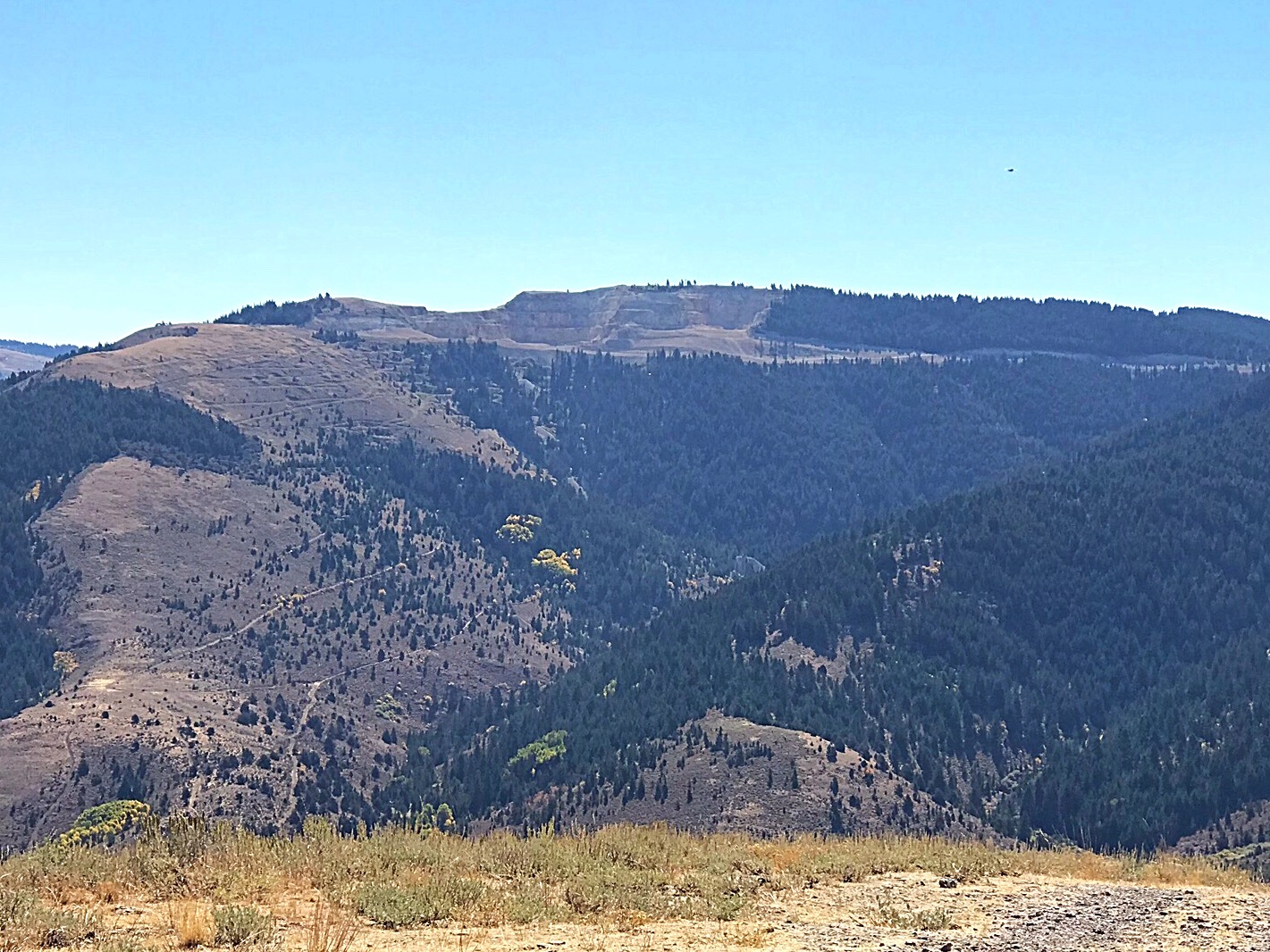 Florida Mountain sits due west of Silver City. It is one of the most heavily mined mountains in Idaho and it has a large, inactive open pit on its northern slopes. Although mining roads provide access to its summit, most of the peak is privately owned and public access may be blocked. USGS De Lamar