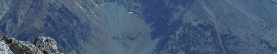 This peak is 1.5 miles east of the Wildhorse Mine. Improvements made in 2012 to the 4WD road up Wildhorse Canyon [(C)(1) on Page 259] block the road at the start of the first switchback marked on the topographic map. There is a small parking area here. Walk up the road until the clearing at the 8,200-foot contour. Follow the clearing up and continue to the ridge top 3,200 feet above. Follow the Southwest Ridge to the summit, crossing back and forth over the crest as needed. Akin to its neighbor (The Fin) across the valley to the east, this route is one of the best ridge scrambles in Idaho.