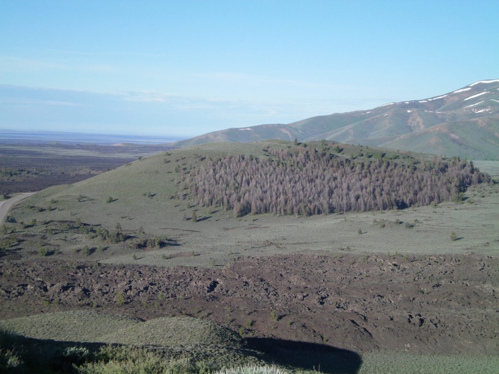 From the entrance to Craters of the Moon National Monument, drive 0.8 miles west on US-20 to the [higher] second pullout on the south side of the highway. The elevation here is about 6,000 feet.