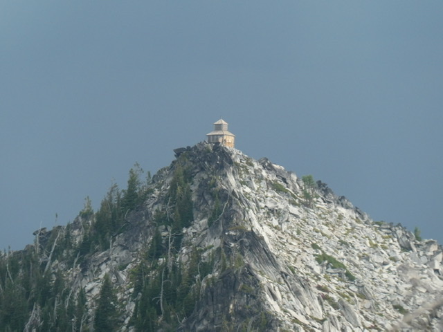 Grave Peak is an impressive summit topped by a classic cupola cabin fire lookout built in 1924 and precariously perched on its ragged granite summit. Although the lookout was last used in the 1960s, it was partially refurbished in 1998 by volunteers. The mountain itself is one of the most impressive peaks in the massive Clearwater Mountains. A trail leads to the summit from the south. The trail can be reached from either Tom Beal Park or the Kooskooskia Meadows trailhead. In addition, a climbing route is also feasible from Tom Beal Park. These routes are described below. USGS Grave Peak