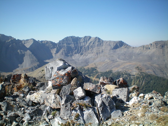 The route information in the book for the Southwest Ridge Route is accurate. The route starts at the 10,000 foot pass on the peak’s Southwest Ridge. Feldman and Grantham and their party left the trail before reaching the pass as shown in the GPS track below. Alex reports “We followed the track from the parking area in Scott canyon at the wooden fence about a mile(?) up the canyon, where we took a left fork on another trail up a draw which eventually goes up to the saddle between Huh’s and Italian. The trail we followed is not on the USGS topo, but it is on a forest service map. It headed generally northwest, and we left it at about 9500 feet to gain the southwest ridge of Italian Peak at right about 10,000 feet. From there we followed the ridge up to the peak. The ridge was steep, but with pretty firm talus that wasn’t particularly difficult or time consuming to climb. The ridge leads directly to the west summit.” [Editor’s note: The difficulty of a talus slope is somewhat subjective.]