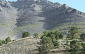 From the junction of ID-28 and ID-33 in Mud Lake, drive N on ID-28 for 42.5 miles to [signed] Nicholia Road. Nicholia Road is located 6.1 miles N of the Kaufman Picnic Area on ID-28. Turn R/NNE onto Nicholia Road and drive 3.1 miles to an unsigned junction with a dirt road that runs southward at the base of the mountains. Drive 4.5 miles S on this dirt road to reach an unsigned L turn for Scott Canyon. You will pass 2 turnoffs for Eidelman Canyon (at 0.9 miles and 1.6 miles), a turnoff for Italian Canyon (at 2.5 miles), and a sign for Irish Canyon (at 3.7 miles) on the way.