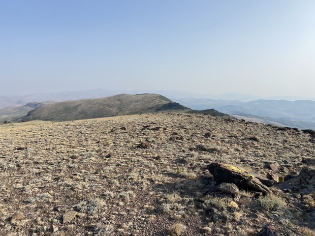 This peak can be accessed from the northeast via the Whiskey Mountain Road and the Upper Succor Creek Road [(A)(1) on Page 346] or from the south via the Northern Owyhee Crest Road and the Upper Succor Creek Road. Use this link for access details and maps: Reynolds Area Access Routes. A rough 4WD road climbs out of the headwaters of Succor Creek from the Upper Succor Creek Road to the saddle on the peak’s south ridge. Another, even rougher road climbs from the saddle to the summit. Be warned: vehicle access requires a 4WD and lots of time.