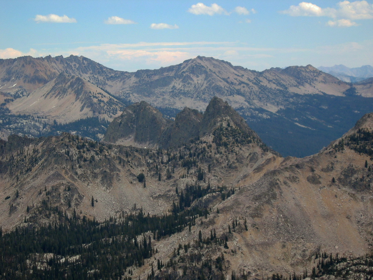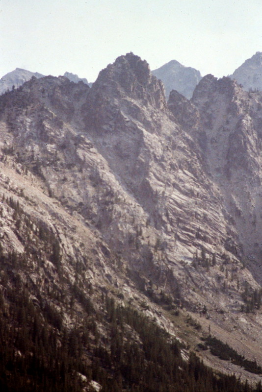 This peak is located near the headwaters of the South Fork Payette River, south of Grandjean. John Platt and I recorded the first ascent of this peak in 2011. It is rated as the 6th-steepest peak in the State of Idaho. The first time I saw this peak was in 1990 (see A Sawtooth Traverse). From the distance, the summit block looked steep and studded with granite towers. My research failed to turn up any information on this unnamed peak and, based on its location, I told myself the peak was probably unclimbed. It took me a while to find anyone interested in attempting it. USGS Mount Everly