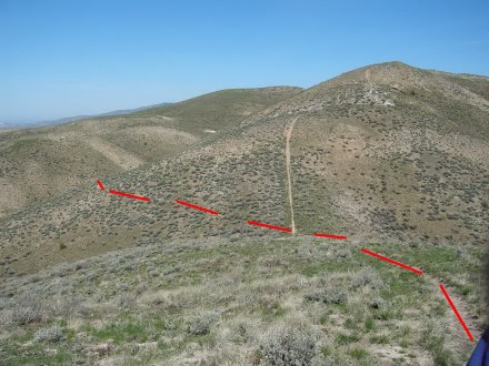 Bypass 5 leaves the road just after it passes through a fence line that crosses the ridge at its lowest point. This last bypass saves some elevation gain but is a little longer route than following the road.