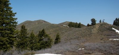 From the saddle (5,444 feet), the trail climbs steeply to the peak’s [lower] East Summit. This section of trail appears to be an old fire break which is occasionally traversed by elk or a human. The trail is brushy in spots and is always steep as it climbs up the face. As shown on my GPS track, it is possible to leave the trail short of the summit ridge and traverse directly to the summit. Round trip stats: 9.2 miles with 1,900 feet of elevation gain.