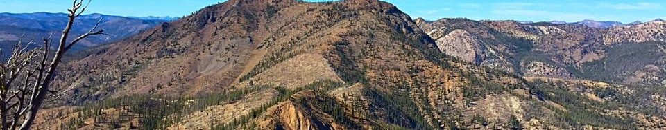 I climbed the route set out in the book with John Platt in 2015. We drove toward Monumental Summit and turned onto the Thunder Mountain Road just short of the pass. Although narrow, the road was in good shape. At 1.7 miles, the road took a hard left and we managed to park just off the road on this turn. From this point, we climbed straight up the peak’s West Slopes in roughly a mile with 1,000 feet of elevation gain. The slope was steep, tree-covered and mostly free of downfall.