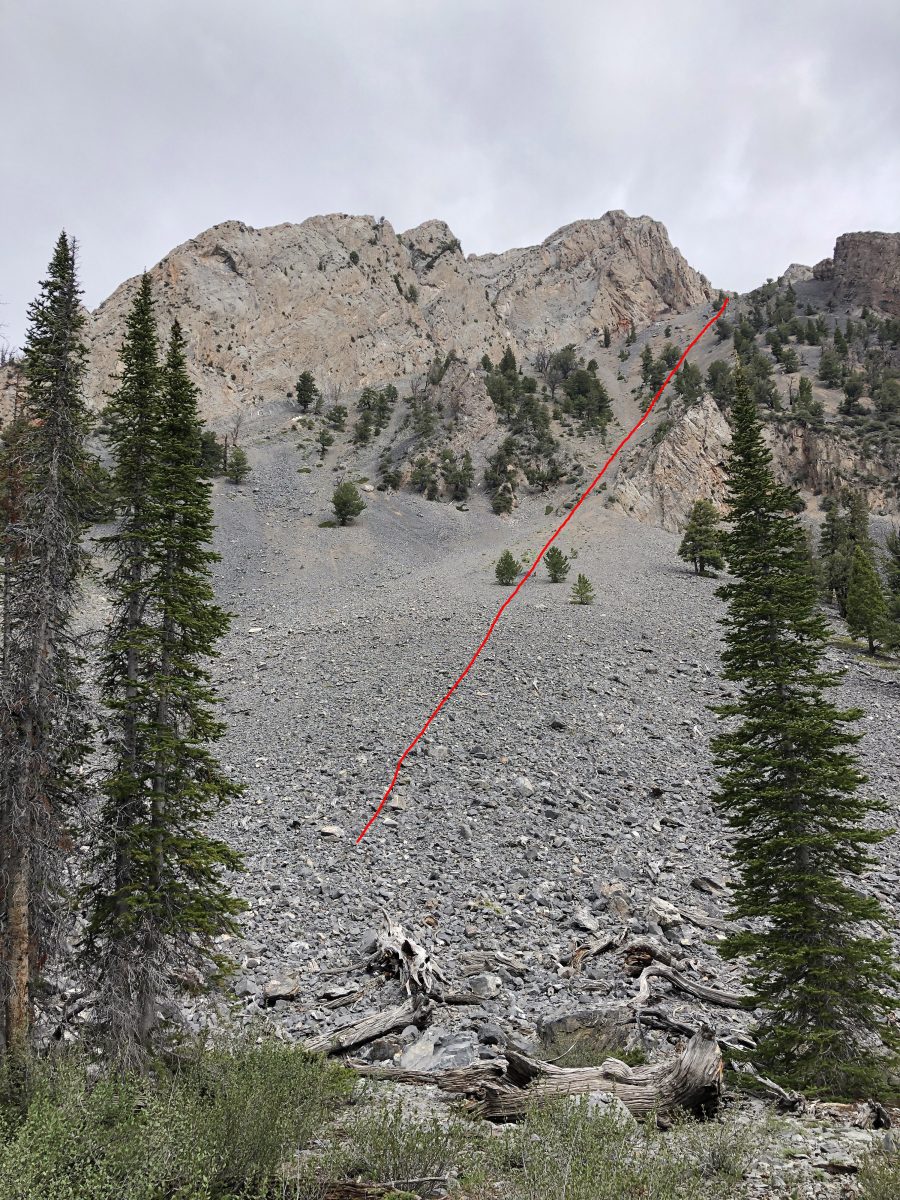 Don’t let that lower YDS rating trick you. This is NOT the way you want to climb Peak 10340. I used the West Face as a descent line so I could shortcut over to Mount Darcy, and it served that purpose just fine. The lower rating assumes you stick to the loose talus, and most of the way that’s your only option. There’s some workable scrambling terrain in the middle of the route, and you could possibly take that diagonally north to gain the ridge and traverse to the summit. For the most part, if you try to ascend the West Face, you’ll be clawing your way up talus that slides down with every step you take.