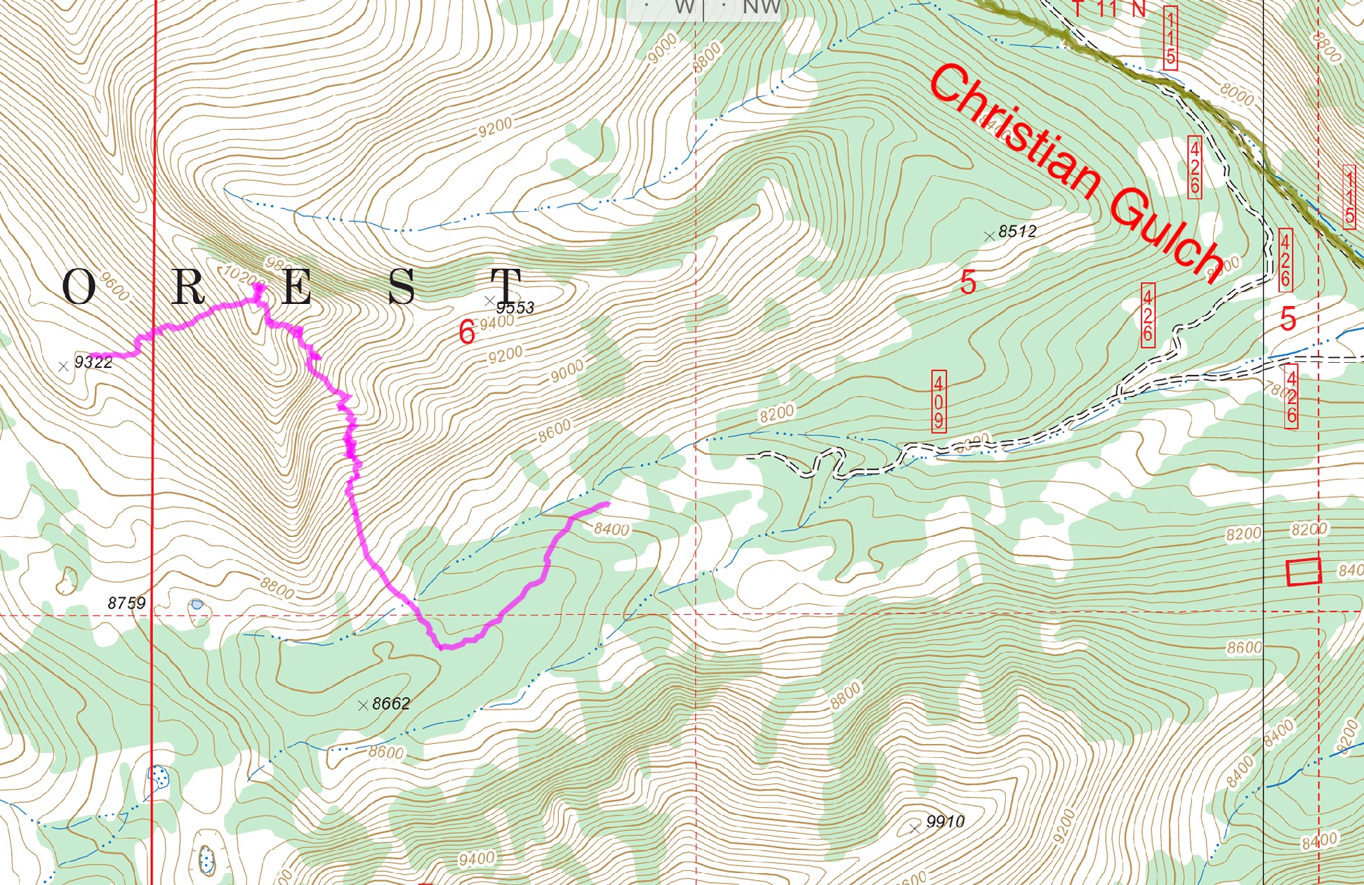 Drive up Christian Gulch Road/FS-115 and continue onto FS-409. FS-409 turns into a rugged 4WD road after 8,200 feet. At 8,400 feet, it does eventually smooth out but, at that point, it’s a narrow ATV trail so you’ll be brushing up against branches in a full-sized vehicle. I parked at 8,350 feet when I seemed to be driving slower than I could hike the road.