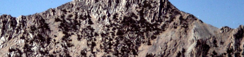 Your joy will quickly turn to sadness when you see what the Southeast Ridge of Peak 10718 looks like. Tom Lopez calls this a “rough peak that is seldom climbed” and now you can see why. But there is good news. The southeast ridge is actually a relatively pleasant Class 3 endeavor. The ridge proper is littered with many ugly cliff bands and towers so you’ll have to avoid the ridge crest itself. And, from here, the summit block/fin appears to be a Class 5 finish. Wrong again. It won’t be and you WILL stand on top of this bad boy. Climb the southeast ridge, staying to the right/north of ridge problems. Amazingly, you’ll reach the summit boulders with an easy Class 3 scramble. The highest summit boulder goes at Class 2+, not Class 5. The views from the summit are stunning. Very few climbers have enjoyed this special viewpoint. Tom Lopez got that right.