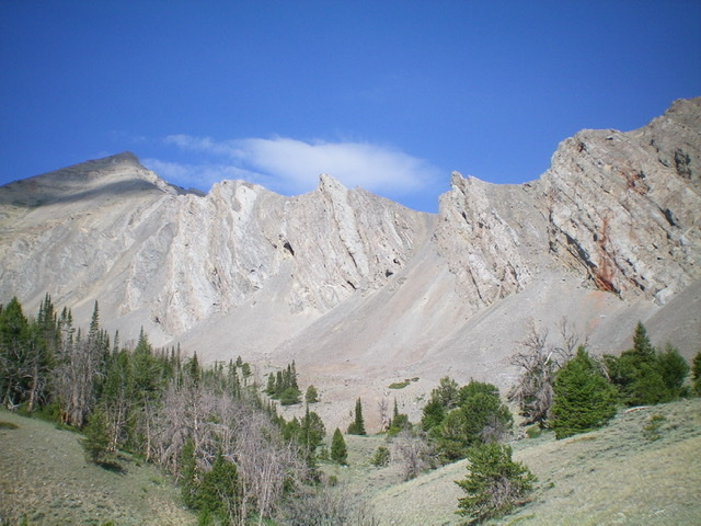 Peak 10878 sits on a connecting ridgeline due north of Doublespring Peak. I climbed the peak on my way to the summit of Doublespring Peak. USGS Borah Peak