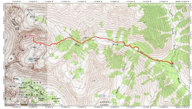Follow the trail up the drainage until it crosses the 8,600-foot contour. Contour southwest across the West Fork of the Big Wood River and take advantage of herd paths to reach a flat area at 9,240 feet. Head west until reaching the 9,600-foot contour. To maximize the length of a pleasant ridge walk, stay as far east as practical as you climb north up the steep South Face to reach the East Ridge. Follow the ridge to the summit.