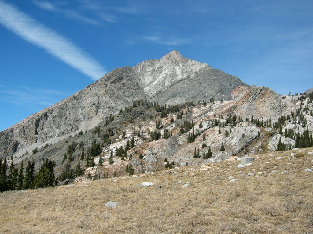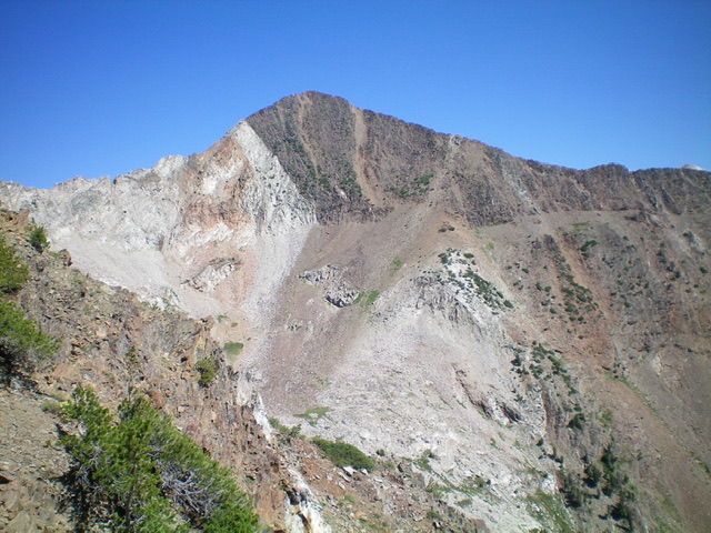 From the end of East Fork Road, hike up the overgrown, narrow Johnstone Pass Trail for just over ½ mile to an open area at the base of the wide gulch (on the left/west side of the trail) that separates McIntyre Peak (right) from Jacqueline Peak (left). Stay on the trail until reaching a talus/scree slope that the trail crosses. Leave the trail here and follow the rocky slope as it heads up the right/north side of the wide gully. Stay to the right of the wet, brushy drainage that comes down the center of the wide gully.