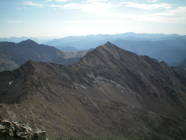 Climbing and access information for this peak is on Page 252 of the book. The book describes two routes, one for the southeast face and one for the south ridge. There are problems with both routes. In my opinion, the south ridge route is not practical for two reasons. First, the Forest Service has abandoned the Johnstone Pass Trail (because the slopes below the pass kept sliding) making access to the ridge more difficult. Second, the rock obstacles on the ridge are both complicated and friable. The Southeast Face Route described in the book is a good route but reaching it is difficult because of the loss of the Johnstone Pass Trail.
