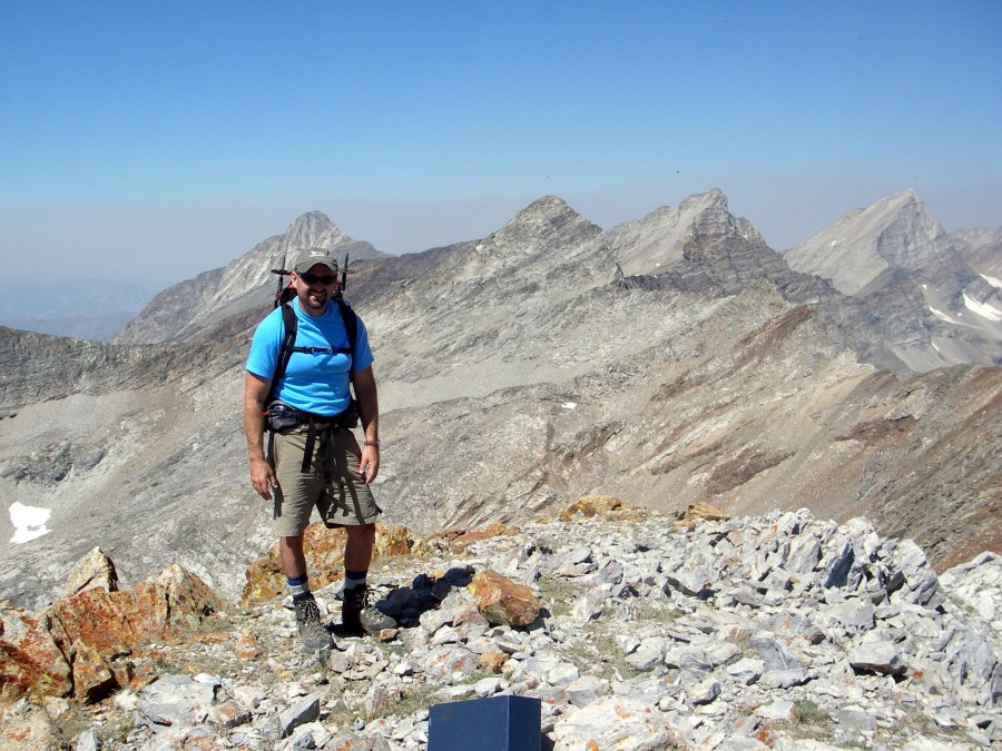 From the Johnstone Pass trailhead (8,100 feet), hike up the trail for about 1.7 miles to about 9,050 feet where the trail is in semi-open terrain and is heading up the slope toward Johnstone Pass. The trail does not cross to the right side of the East Fork Wood River until much higher up than the USGS map indicates. In addition, there is no sharp right turn where the trail suddenly heads up toward Johnstone Pass. It’s more of a gradual bend in the trail’s trajectory.