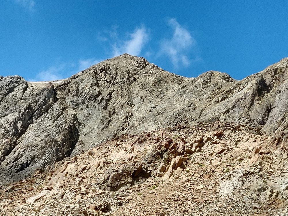 This peak is not in the book. Judi Steciak and Carl Hamke provided the following route information for the peak’s West Ridge Route and Southwest Face Route. See their article on the Missing Eleveners in the Climbing History Section of this site. Brett Sergenian provided the route information for the peak’s South Ridge Route and East Ridge Route. Updated August 2019