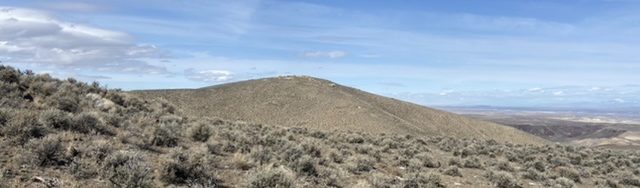 Peak 4584 is an attractive summit in a relatively unknown section of the Owyhee Mountains. The peak is located southwest of Grand View, Idaho. This peak, along with neighboring Peak 4258, is found at the northern end of a complicated ridge system that descends from Doyle Mountain and Black Butte. Castle Creek is located on the west side of this ridge system with Hogpen Gulch to the east. The summit is an Owyhee Batholith granite outcrop. The views from the top are exceptional and include the Silver City Range front, the Snake River Plain and the Danskin, Trinity and Boise Mountains. USGS Antelope Spring