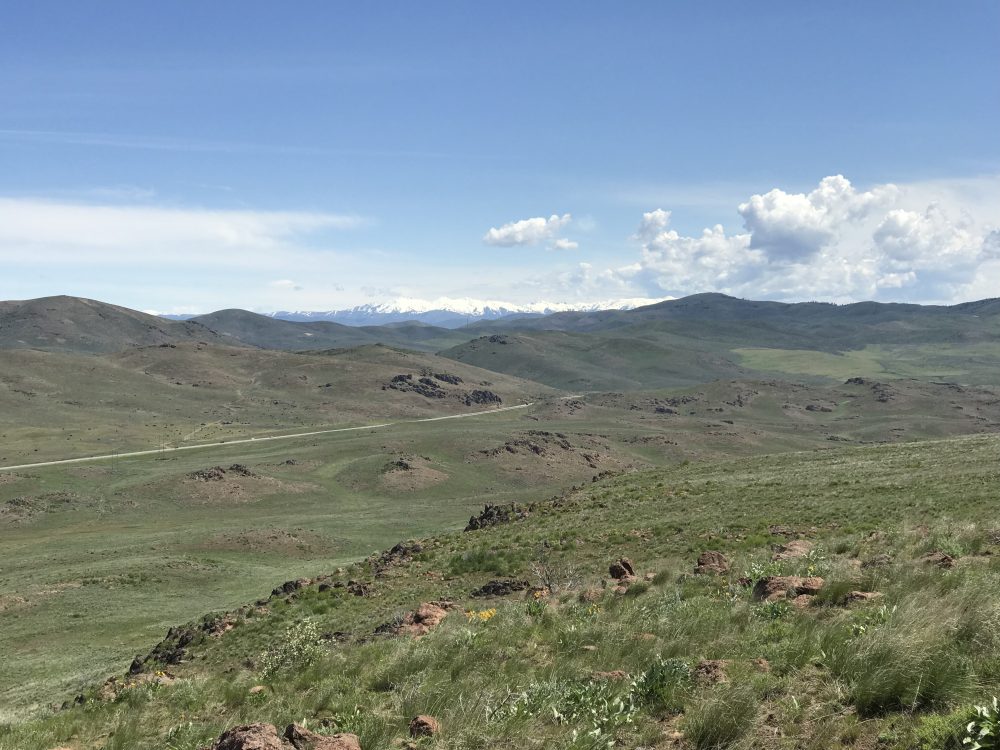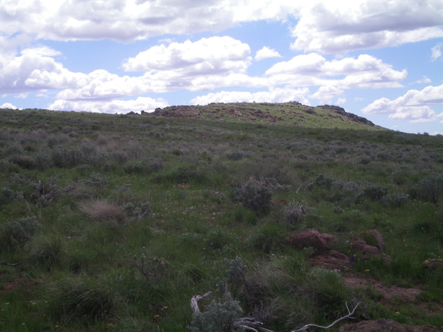 Once you are through the fence, climb the peak by simply heading toward the summit. We drove partway up the road to shorten the hike. At the road’s high point, we turned west and followed the broad, grass-covered slopes to the summit.