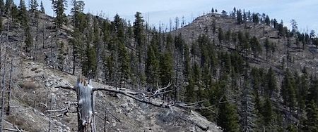 The two Johns mountain biked up FST-096. When they ran into snow, they abandoned their bikes and climbed up the peak’s South Face and joined the summit ridge west of the summit. Their GPS track is set out below. Their round-trip stats: 10.6 miles with 2,653 feet of elevation gain.