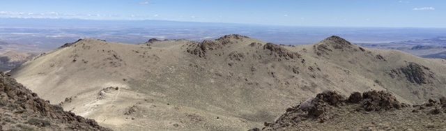 From the range fence below the summit of Rough Mountain, follow a faint ATV track northeast. This track becomes more defined as it descends toward Half Moon Pass. You can follow this track the entire way to the pass or make a Class 2 drop off the ridge as shown on the GPS track below. From the pass, ascend the peak’s west slopes to the ridge top then turn southeast and climb the small summit block.