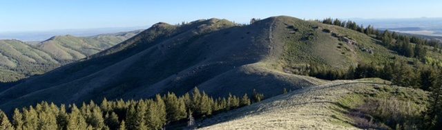 This route is a pleasant, rolling ridge walk. An ATV trail follows the ridge north from the pass. Follow this track on its up-and-down journey north. When the ATV trail ends, continue north on the ridge crest. You quickly reach an ancient bulldozer cut fire break. Follow this overgrown fire break north. It is amazing how steeply the bulldozer climbed up the steeper sections of the ridge. The ridge is brush-free except for one small section in the last saddle before the summit. The round trip covers 3.8 miles with 439 feet of elevation gain.