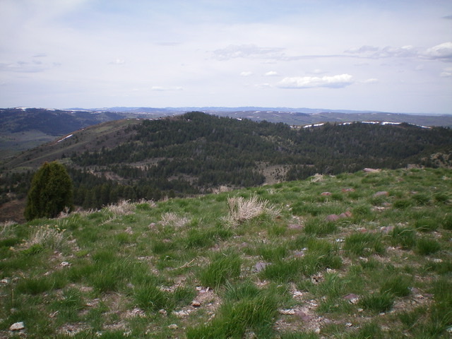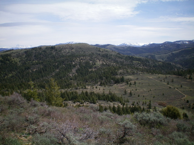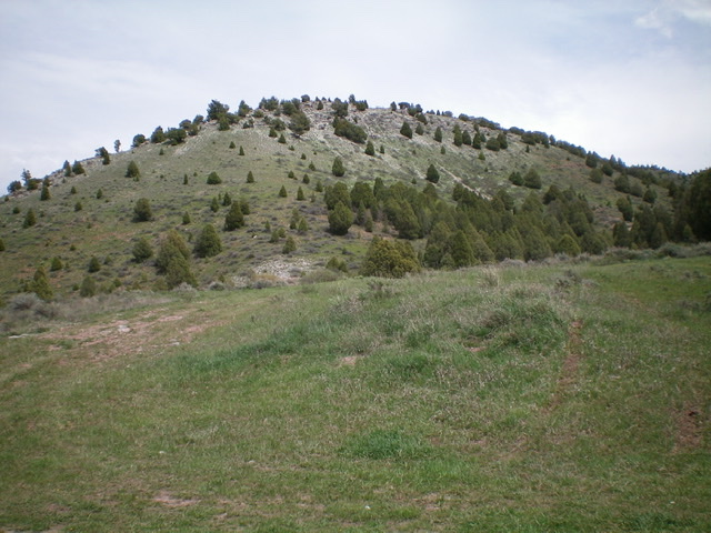 From the summit perch, descend southeast briefly on the summit ridge then drop northeast through sagebrush to cross a dry gully and reach an open shoulder that leads down to a good, visible ATV trail (FST-306). Follow FST-306 northeast to reach a saddle at the head of Rash Canyon.