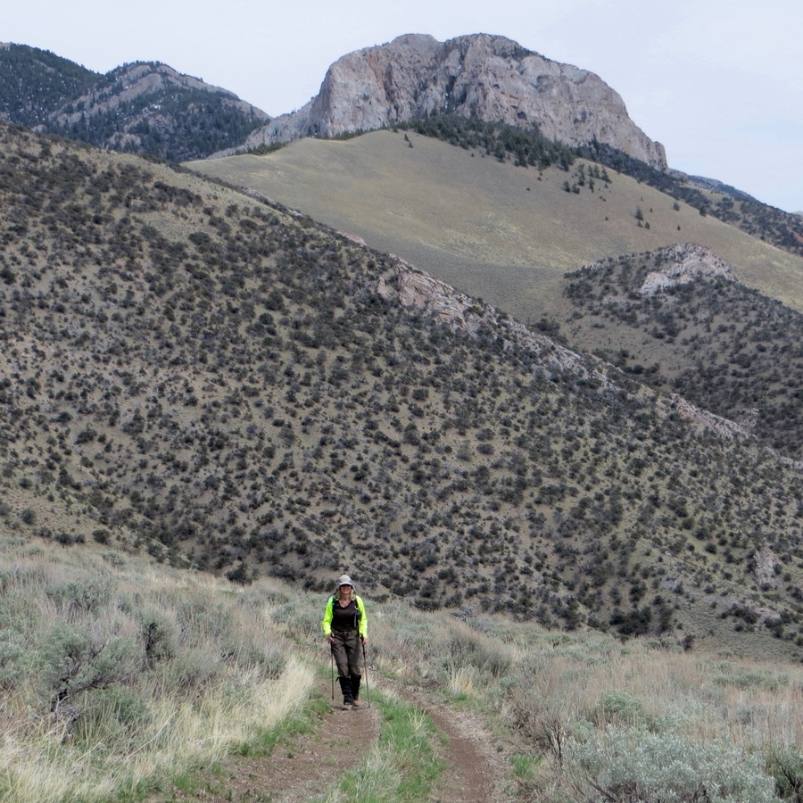 Private land lies due south of the summit. However, the land is fenced so stay on the public side to not trespass. As shown on the GPS track, below, we descended south along the public side of the fence line to make our outing a loop route. The fence follows all the way down to the mouth of the canyon to “our” trailhead, a fact we noticed when we started out. It’s a little more sporting descent route, so it may not save you any time. Additionally, there is no easy path to the east and back to the road if you change your mind along the way, so you need to fully commit to the south descent or just backtrack your approach on the 4WD road.