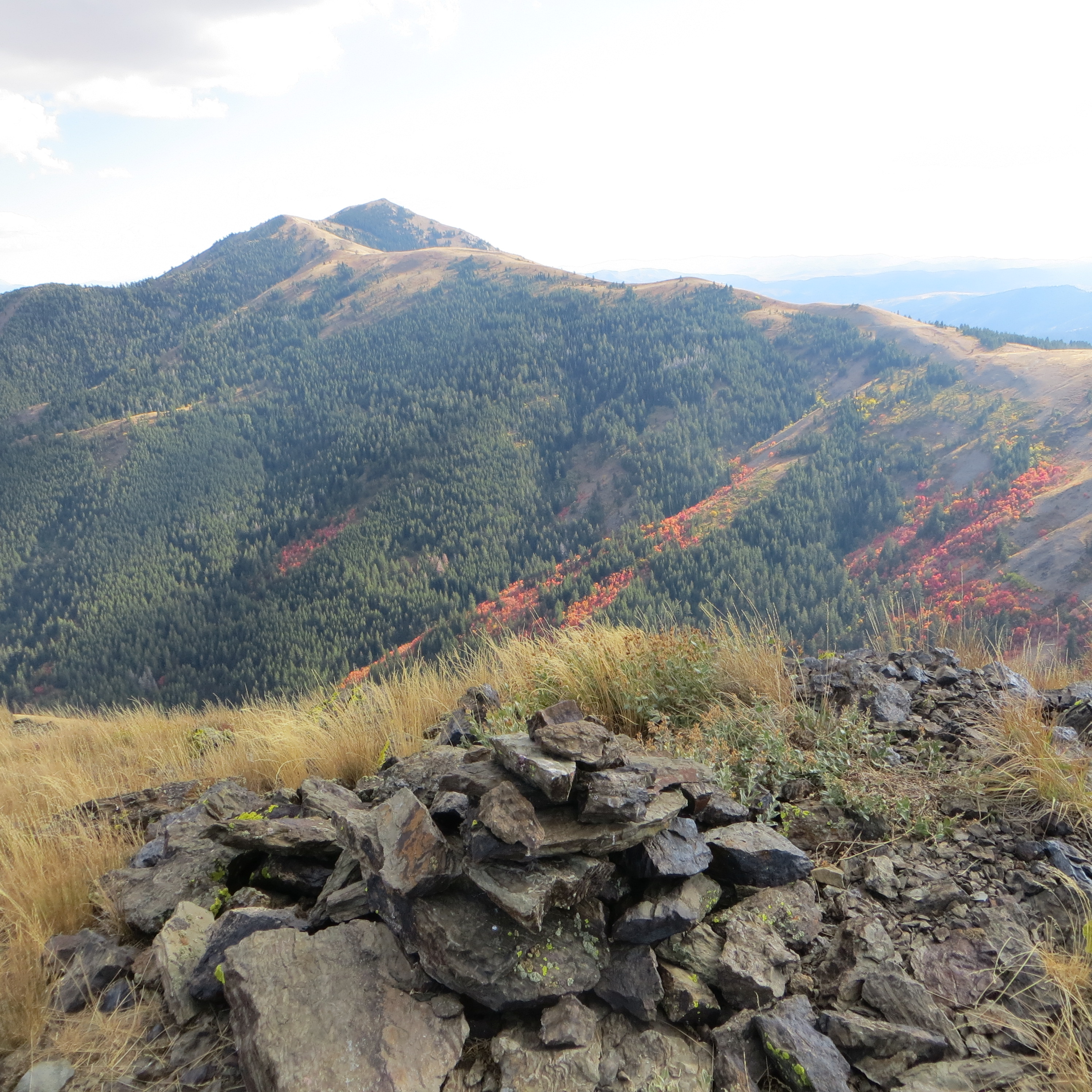 From the north and the summit of Scout Mountain, descend Scout Mountain Top Road to the distinct trail to the east at 8,000 ft and reach the summit as previously described.
