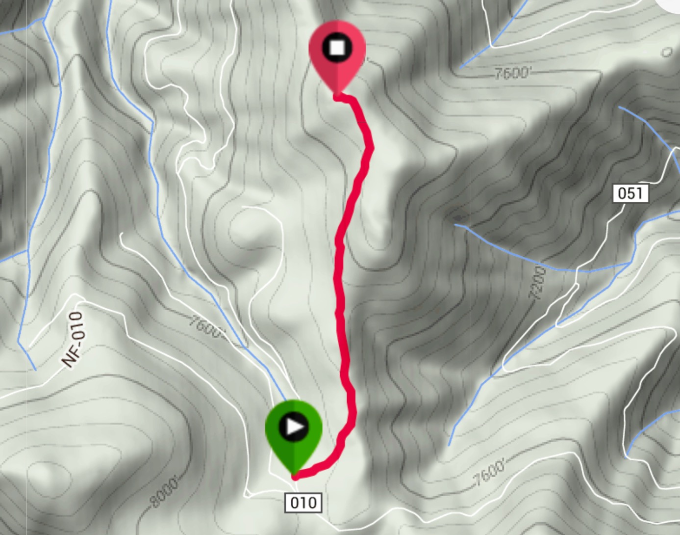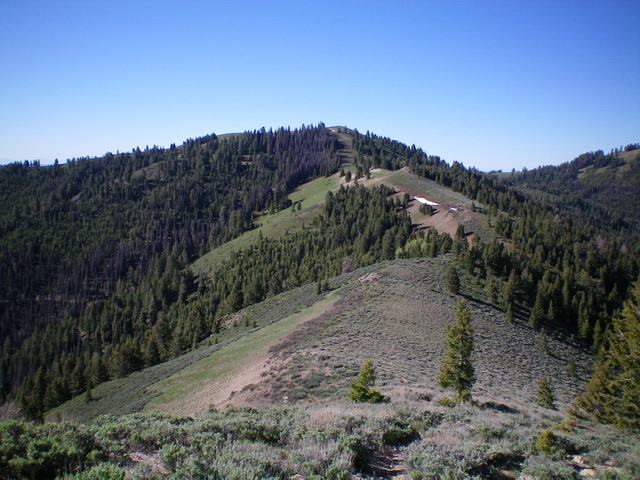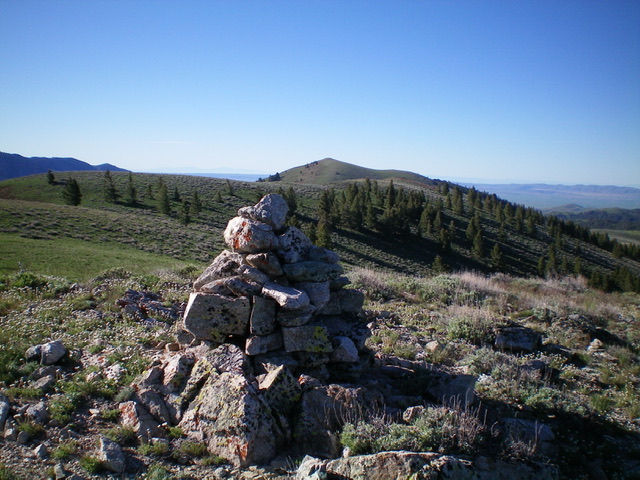 Climb the peak from FS-010 where it crosses the peak’s south ridge. There is an overgrown road that follows the top of the ridge a short ways and then turns into a game trail that leads to within 50 feet of the summit. Other than patches of thick sagebrush, you can climb this peak from almost any direction. A road parallels the peak’s west slopes and offers an alternate starting point. My GPS recorded 1.2 miles and 459 feet of elevation gain.