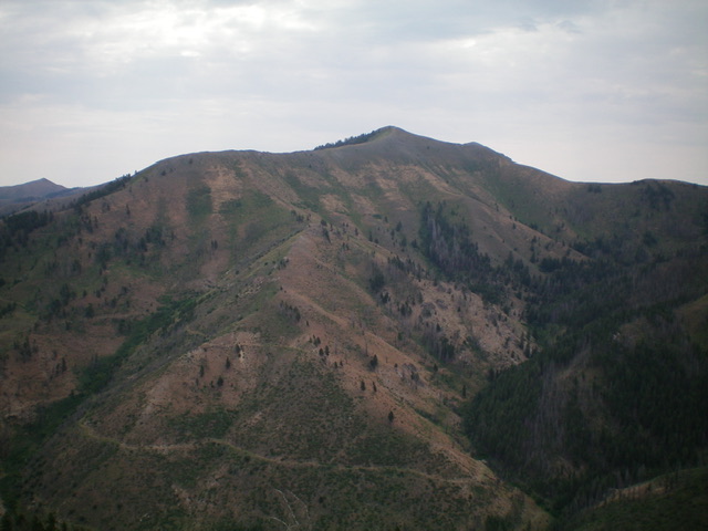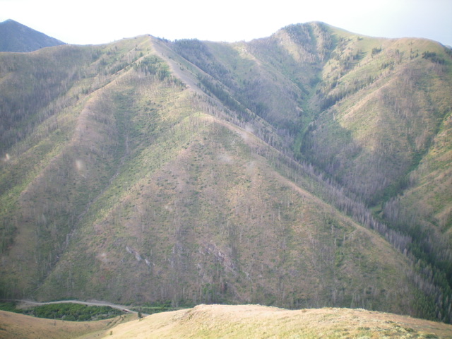 From Albertson’s at the north end of Hailey, drive north on ID-75 for 1.9 miles to a signed junction with Deer Creek Road/FSR-097. Turn left/west onto Deer Creek Road and drive 7.8 miles to a signed junction with Wolftone Creek Road/FSR-102. Turn left/south onto Wolftone Creek Road and drive 2.8 miles to the end of the road at the Wolftone Creek trailhead. Park here (6,525 feet). GPS coordinates: 43⁰30’00”N, 114⁰28’58”W. Please note that Wolftone Creek Road goes farther up Wolftone Creek than the USGS map indicates. Also note that the USGS map calls it Wolf Tone Creek rather than the Wolftone Creek spelling that the [more recent] Sawtooth National Forest map uses.