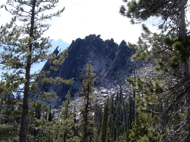 From Kennally Creek Campground, follow FST-101 to Needles Summit [(B)(5)(b) on Page 136]. John Platt reports: “Trails are in great shape. You must navigate several trail junctions. Fairly shady but also buggy. There are a few downed trees here and there, but you can make good progress all the way to Needles Summit.“ The name “Needles Summit” actually refers to 2 passes that are below Peak 8449 and above the Gold Fork drainage. Follow the trail to the second pass.