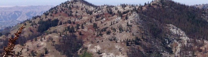Peak 8554 can easily be climbed from the Trinity Mountain Road [(E)(2.2) on Page 155] from numerous points. I climbed the peak via its Northeast Ridge. This ridge is easily reached by a trail that leads from the road to the saddle between Peak 8554 and Peak 9037. This trail is shown on maps. From the road, it is 0.5 miles to the saddle where you will find a trail junction. From the junction, head west to the top of the ridge and then follow the ridge southwest to the summit.