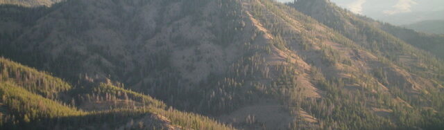 From ID-75 north of Ketchum, turn left/south onto [signed] Baker Creek Road/FSR-162. Reset your odometer here. At 2.9 miles, reach a signed junction with East Fork Baker Creek Road/FSR-168. At 3.8 miles reach a pullout on the right side of the road. Park here (7,060 feet). GPS coordinates: 43⁰44’03”N, 114⁰34’39”W. This pullout is 0.1 miles before reaching [signed] Badger Gulch, from which this climb begins. There are no parking pullouts at Badger Gulch.