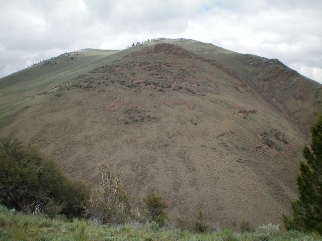 From Trail Creek Road, Peak 8700 appears to be sagebrush hill, but it’s most assuredly not. It is a very rocky, shale-y peak with scrub thrown in to mask its true identity. Be careful here. Do not underestimate this seemingly-innocent hill. It has some “issues,” as they say. From the parking area, hike across a short section of easy sagebrush/grass to reach the toe of the south ridge. The initial section of the ridge is particularly steep and is very loose shale talus/scree.