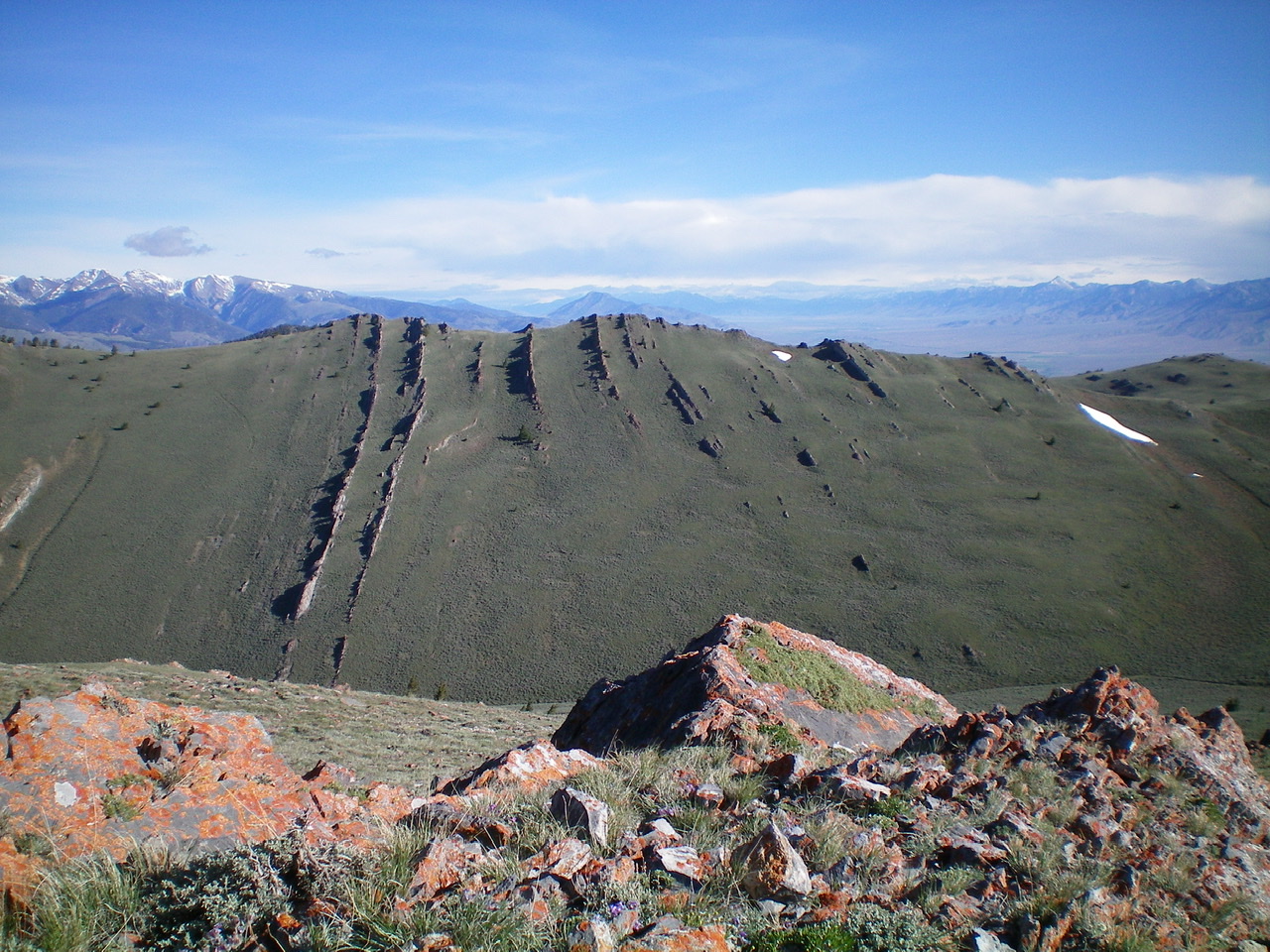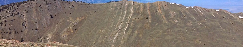 Peak 9004 is located due north of Jumpoff Peak. The 2 peaks are connected by a ridge. The easiest way to climb this peak is to traverse this ridge. A jeep track descends north from the saddle between Jumpoff Peak’s 2 summits and then angles northeast toward Peak 9004. Follow this road to the point where you can access the peak’s long summit ridge. Once on top, follow the summit ridge to the high point. USGS Howe