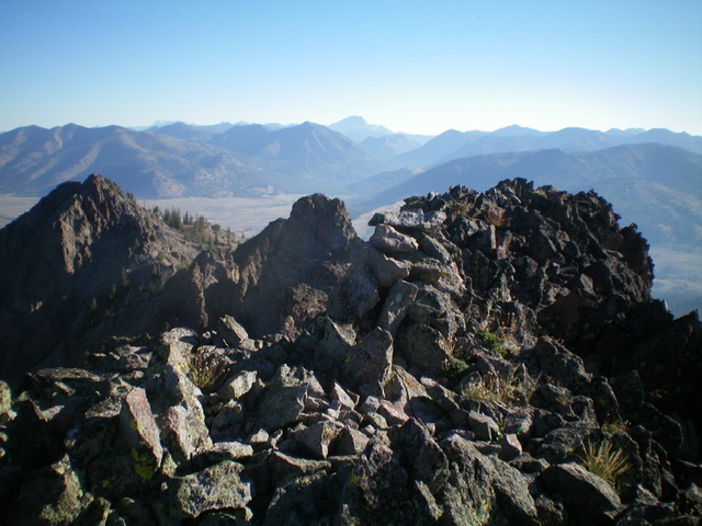 And then there’s Smiley Creek. The book states to “cross Smiley Creek.” Well, that’s easier said than done. The Smiley Creek drainage is wide and is thick with willows, marshes, and beaver ponds. And it’s not a small creek. Bushwhacking across the valley floor from Smiley Creek Road and fording Smiley Creek won’t be easy. The south ridge is rated a Class 3 but I climbed it and it goes at Class 4, not Class 3.