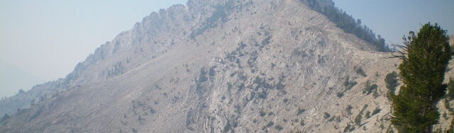 I like to call Peak 9997 “Penmyriad” (from the prefix “pen-” meaning “almost” plus “myriad” which literally means “ten thousand”). It’s the highest peak in Idaho that is under 10,000 feet. And I think it is actually conceivable that we (my girlfriend Chris Elrod and I and our dog Braxon) made the first ascent. I don’t recall finding any cairn or other evidence of prior climbs up there. We climbed via Cabin Creek and the southeast ridge. It was mostly Class 2 with maybe a little Class 3 near the top.