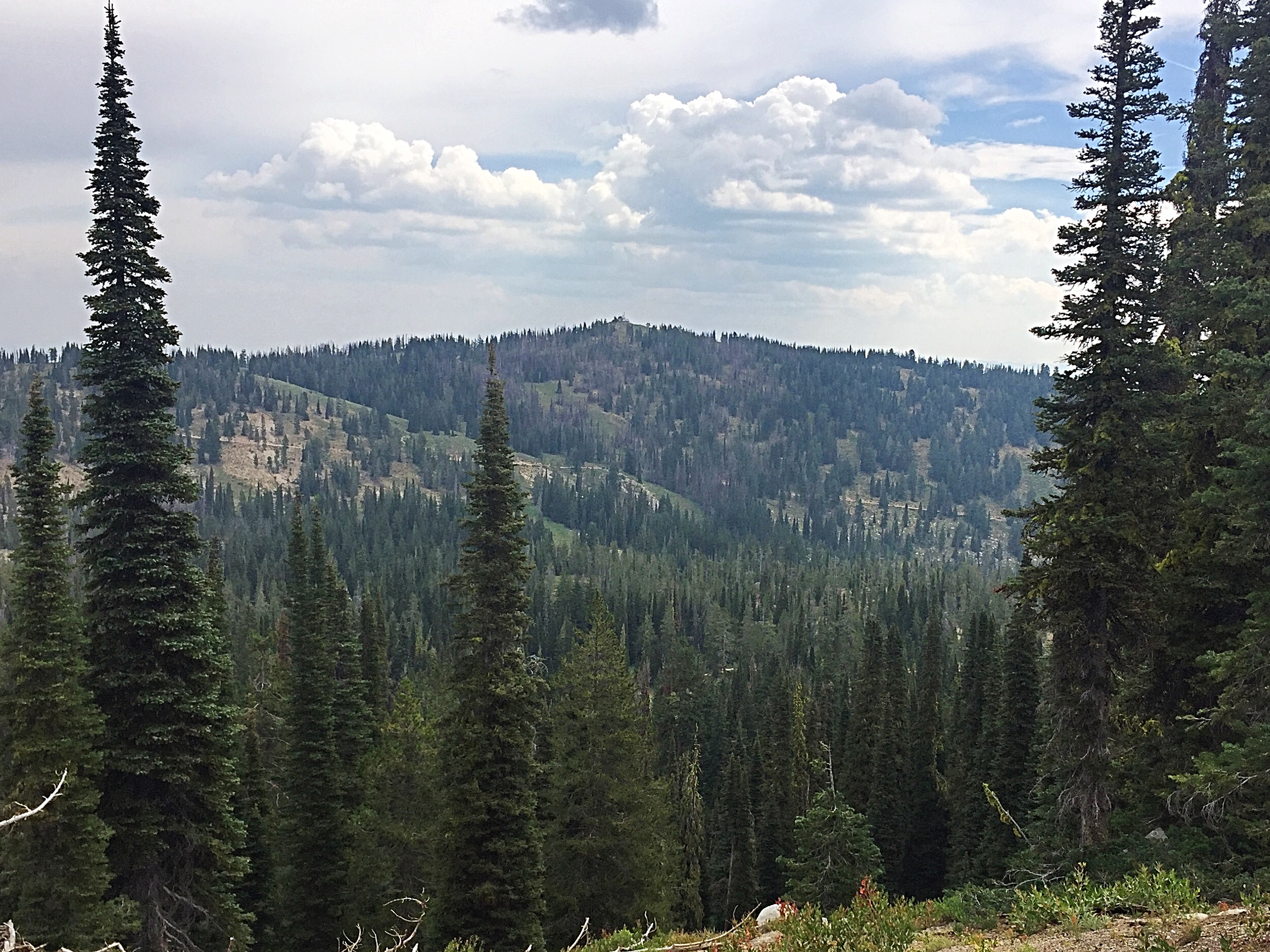 Pilot Peak is a P2K peak with 2,087 feet of prominence, which ranks it at #92 in the State of Idaho. The peak is a very popular Winter destination for snowmobiles, skiers and snowshoers. The parking lot on ID-21 at Mores Creek Summit fills up quickly on Winter weekends. The summit of this peak is reached by a rugged road that seems to get worse every time I drive it. The road leads to a saddle between Pilot Peak and Freeman Peak. From the saddle, it is 0.5 miles to the summit. In the Summer, the road is a good route for a mountain bike ascent. The fire lookout on this peak’s summit has become a hub for communications equipment and is no longer used as a lookout. USGS Sunset Mountain