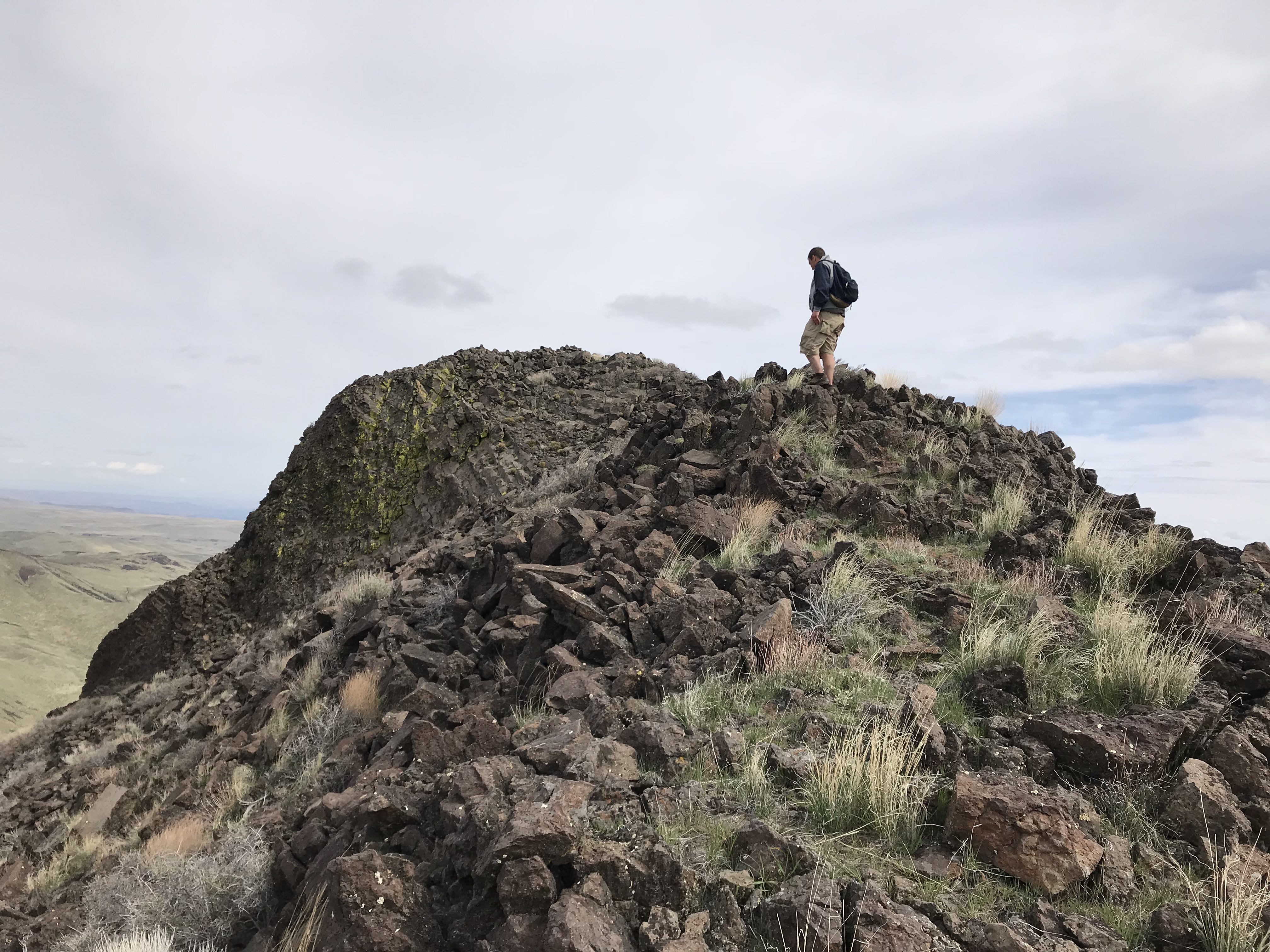 Piute Butte’s summit is crowned with an impressive block of columnar basalt with vertical or near vertical cliffs on three sides. The peak’s South Ridge provides the most feasible route to the summit. The ridge can be reached from either fork of Squaw Creek.
