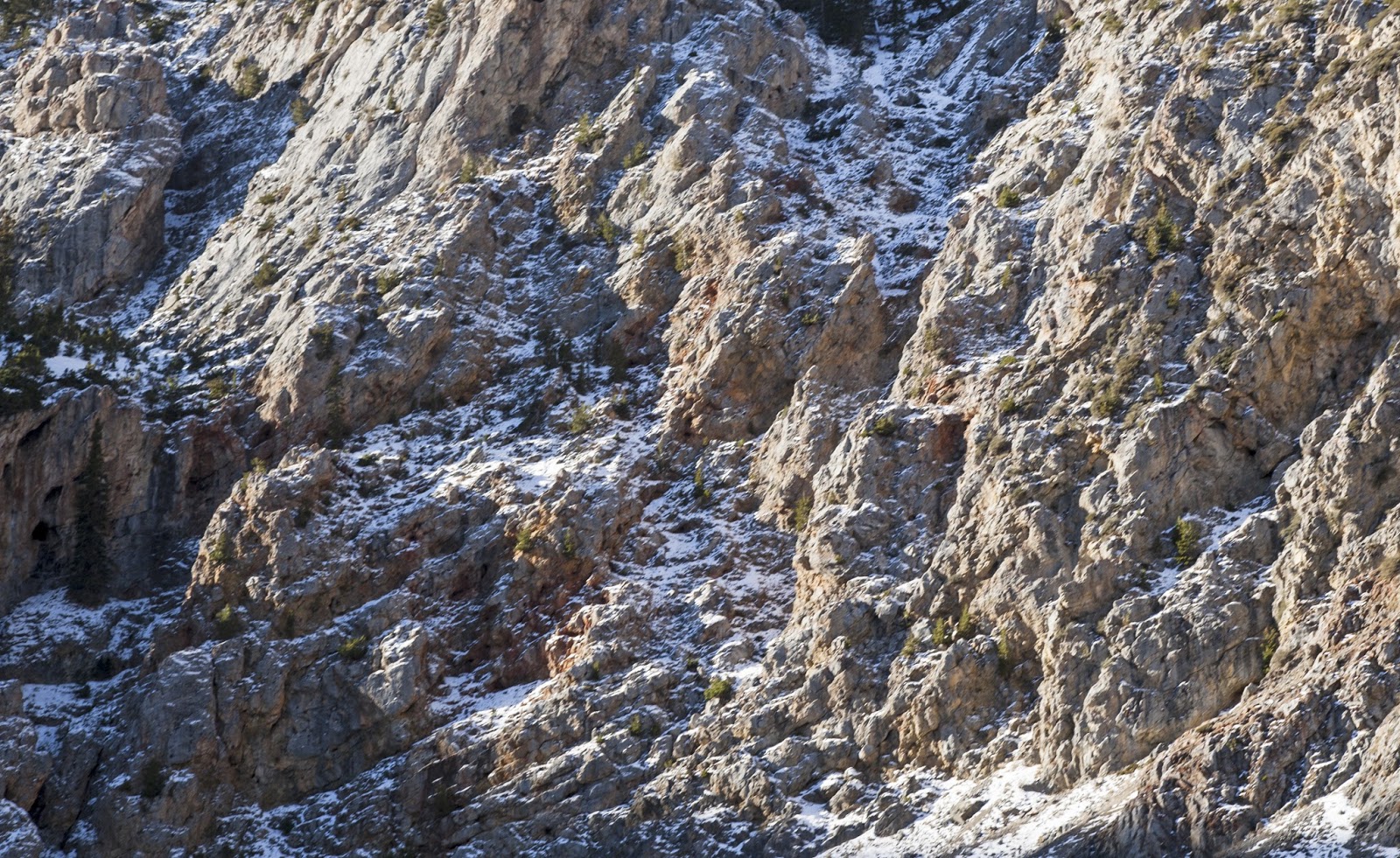 Larry reported: “I decided to take a more challenging route up the face directly to the summit. The crux was finding a route through the tall cliff band guarding the face. Making the route even more difficult was a few inches of snow.” Larry rated the route through the cliff band at Class 3-4. Based on his photos, I would rate the route a solid Class 4. Use the link below to read Larry’s trip report.