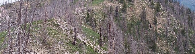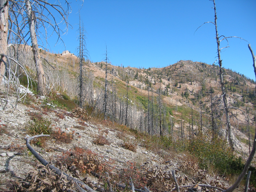 The area around Rattlesnake Peak has been devastated by forest fires. The Tipton Flats Campground described in the book no longer exists and, on a recent visit, I could not find the trail. On the other hand, the country is now wide open. Traversing to the summit will not be hindered by the once-beautiful forest. USGS Prairie
